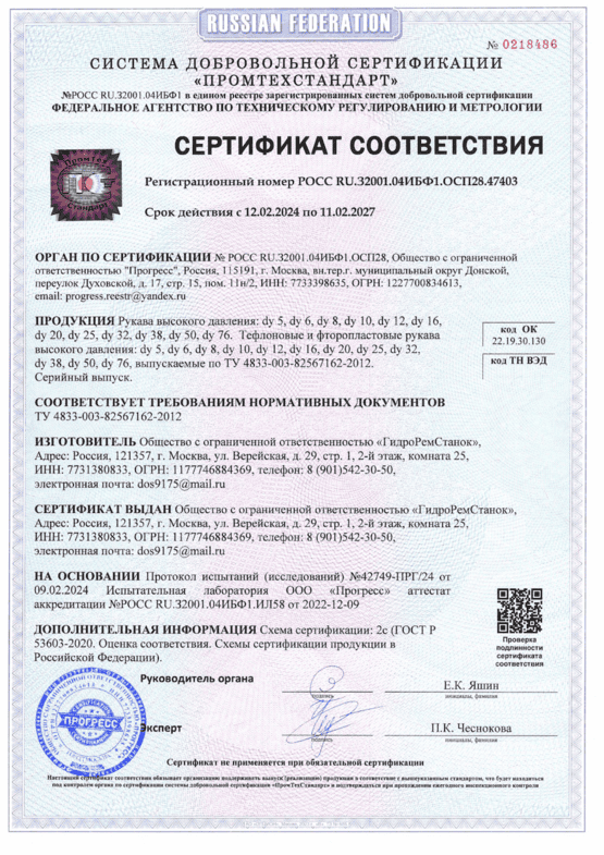 Вся производимая компанией ГидроПрактика продукция соответствует общепринятым общеевропейским стандартам РВД.